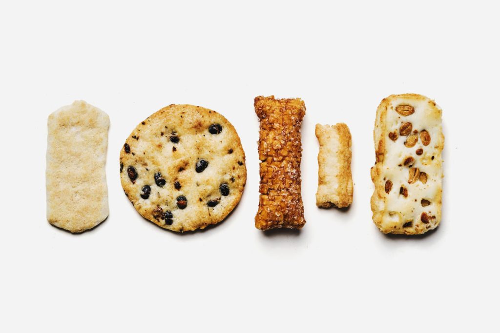 Snack japonés ligero de arroz con sal marina, de textura aireada y sabor puro que realza cualquier momento de picoteo o acompañamiento. Vegano y sin gluten. Medidas: 5x2x1cm.